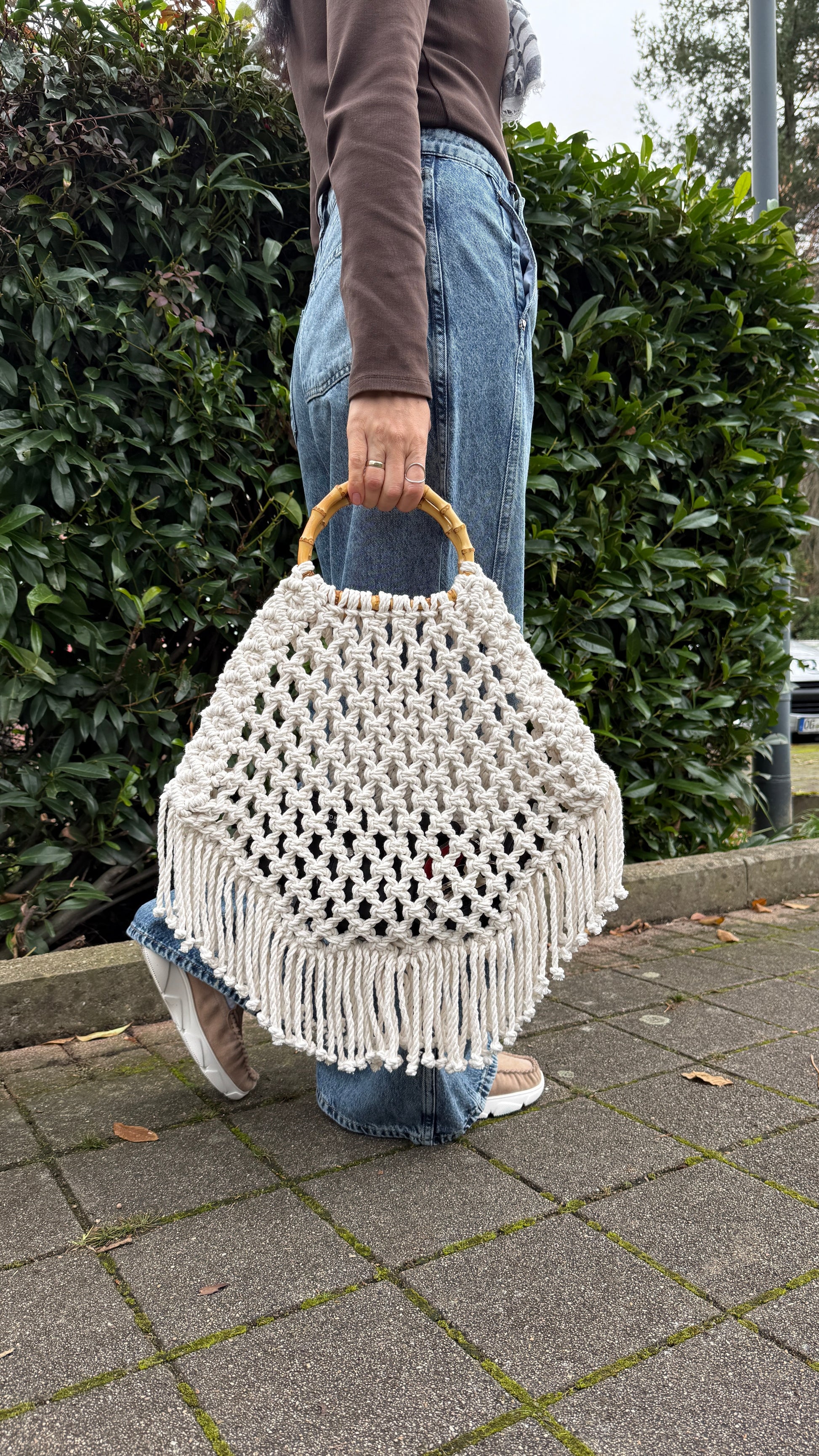 This Listing is for the Macramé Pattern to make the awesome MACRAME NET BAG with bamboo handles. A great accessory for a summer fashion look. Elevate your style with a handmade creation that seamlessly blends boho charm and practicality. Follow my step-by-step instructions to craft a unique accessory that stands out. Perfect for those who appreciate a touch of handmade elegance in their wardrobe. Get your macramé bag pattern now and embark on a creative journey!