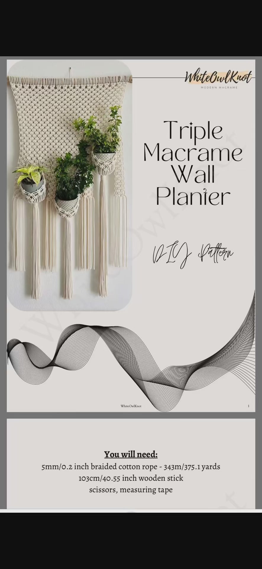 Create a stunning MACRAME TRIPLE WALL PLANTER with DIY pattern! This instant download includes detailed instructions to craft a beautiful macrame wall hanging and plant hanger. Perfect as a gift or to enhance your home decor, this pattern is designed for both beginners and experienced crafters.