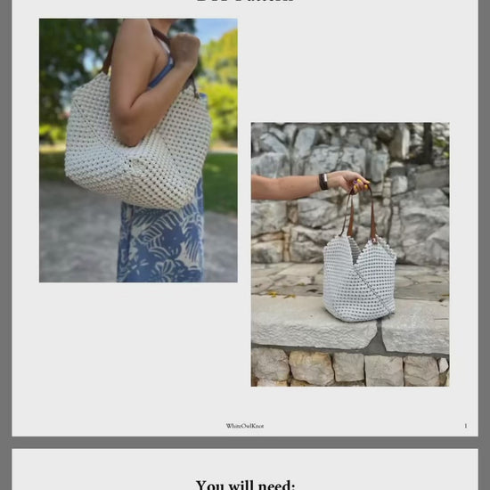This Listing is for the Macramé Pattern to make the awesome MACRAME BAG with leather handles. A great accessory for a summer fashion look. This macrame bag is very roomy, despite its small size, so it can be used as a tote, a market bag in the city, an accessory for a casual look when meeting with friends. Also as a beach bag on vacation and not only. Great gift for someone special.